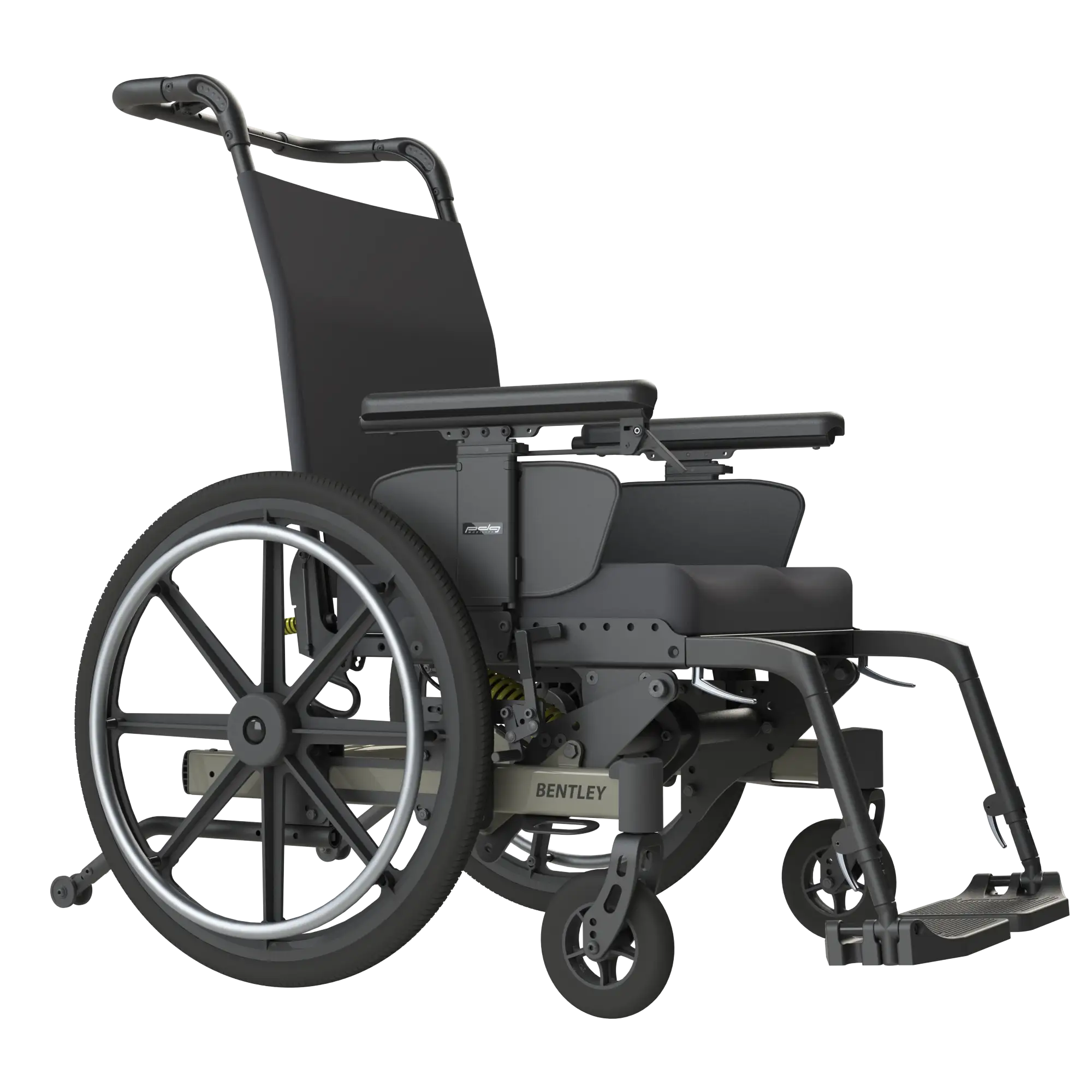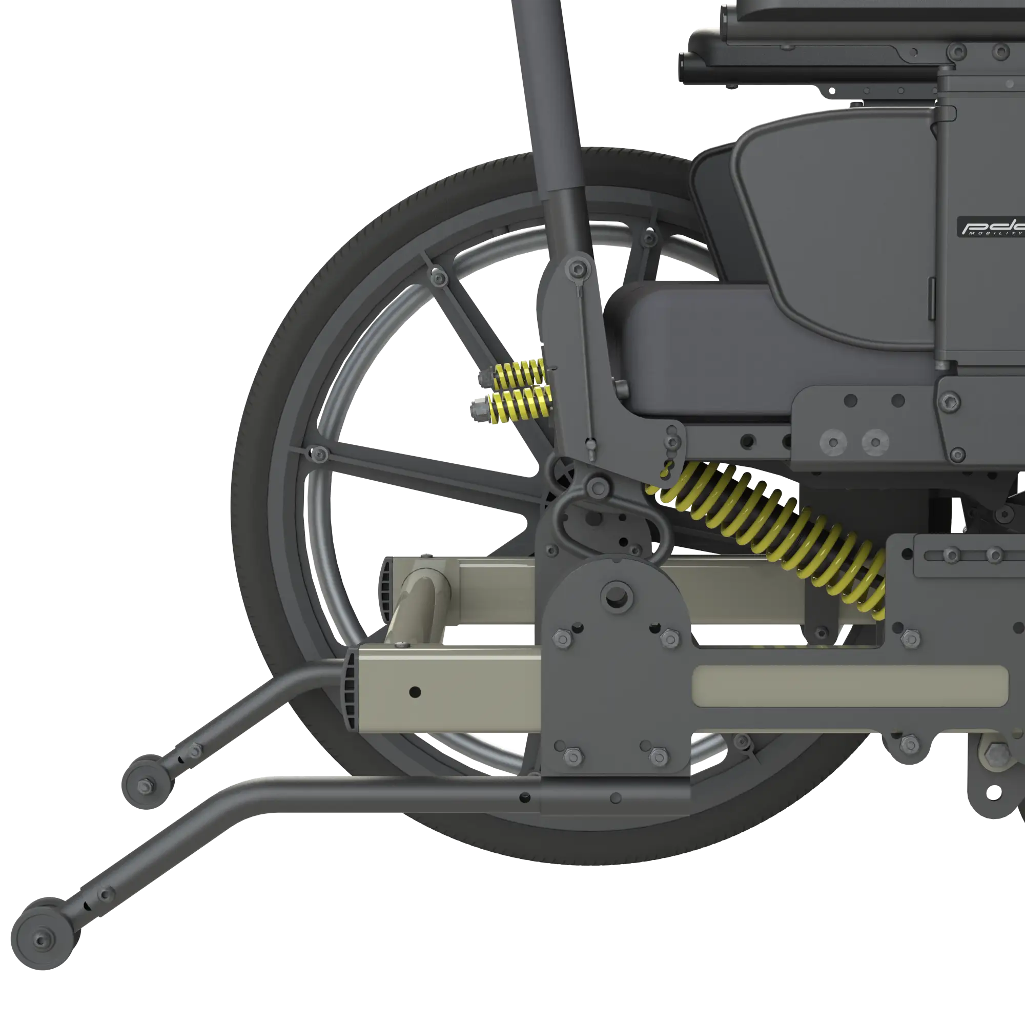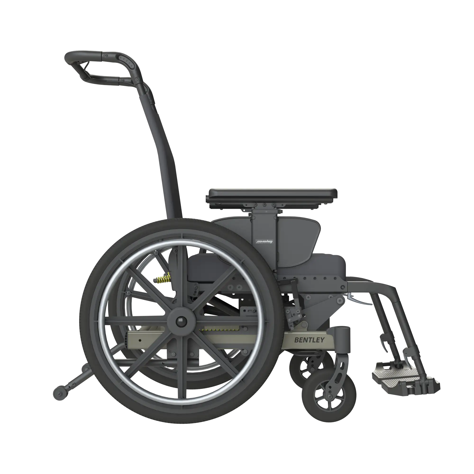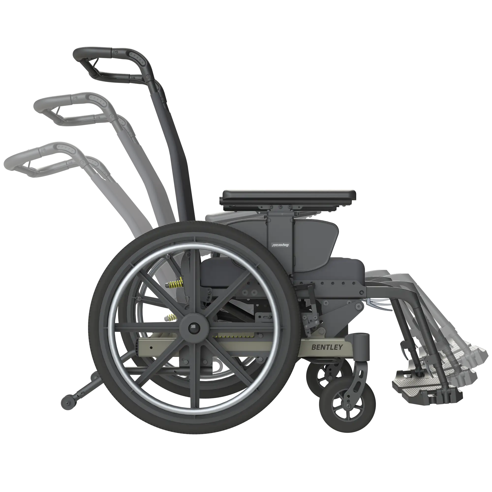 Accionamiento tilt dinámico hasta 20º para variar aspectos posturales y confort sobre manija entera de empuje, regulable en inclinación 200º.