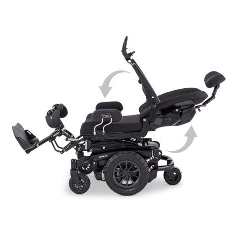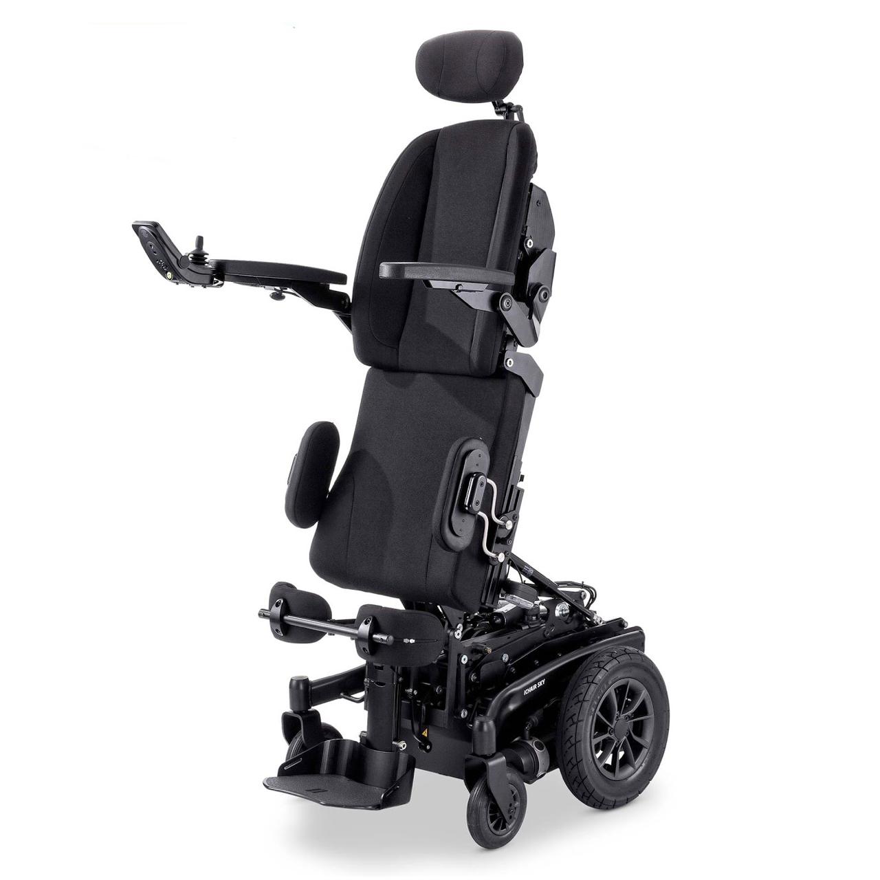 La silla motorizada electrónica de tracción central híbrida verticalizante posee tracción posterior con quinta rueda estabilizante amortizada central o separada, programación personalizada, memoria de posiciones predeterminadas (memory function) y sistema ergonómico para el control cefálico.