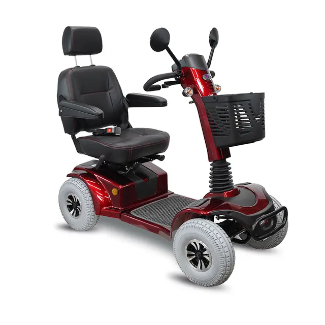 Scooter motorizado robusto, equipado con luces de posición, luces de giro, balizas, espejo y bocina para uso seguro en espacios abiertos. Butaca y apoyacabeza regulable en altura para un uso prolongado confortable. Estructura: Chasis de acero y carrocería plástica de alto impacto. Terminación: Pintado Color: Bordó Apoyabrazos: Rebatibles y ajustables en ángulo Apoyapies: Alfombrado Ruedas […]