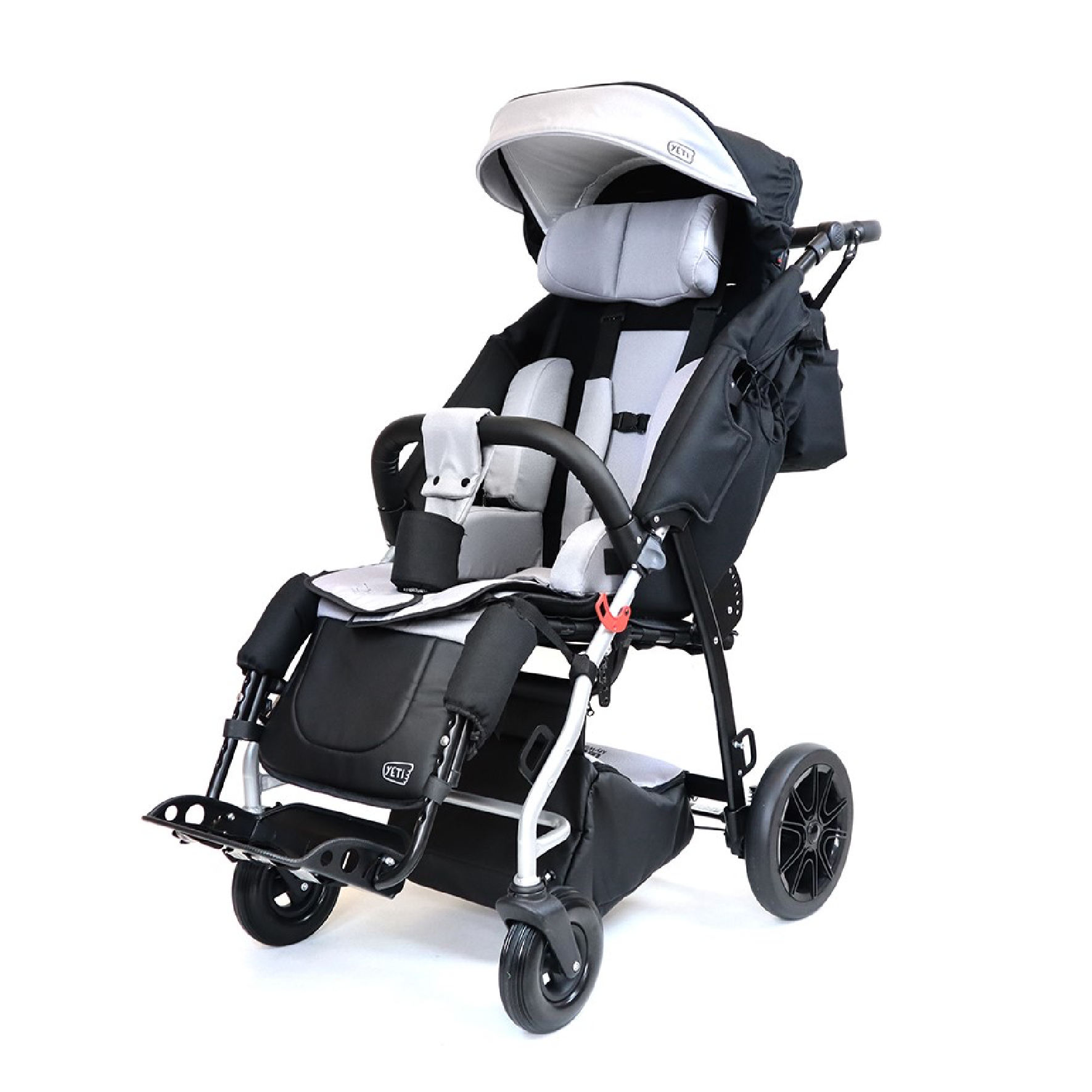 Está diseñada para niños y jóvenes de 130 a 175 cm de estatura y de 80 kg de peso máximo. Consta de un chasis plegable y del tapizado que forma una pieza. El tapizado dispone del sistema de tensión ajustable. YETI ofrece una amplia gama de ajustes que permite ampliar el asiento (de 31 a 45 cm de longitud) y el respaldo (de 65 a 85 cm de altura) así como bajar el reposapiés (de 29,5 a 43,5 cm con respecto al nivel del asiento). Con el fin de estabilizar a usuarios más pequeños es posible colocar almohadillas reductoras ajustables. Adicionalmente, es posible regular en ángulo del respaldo, del asiento y del reposapiés. Gracias a eso, podemos adaptar fácilmente la posición del mismo a las necesidades individuales del usuario garantizándole la seguridad y el confort.